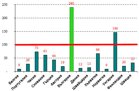 Чрез нормализиране са уеднаквени данните и резултатите на европейски страни с население, съизмеримо с това на България.